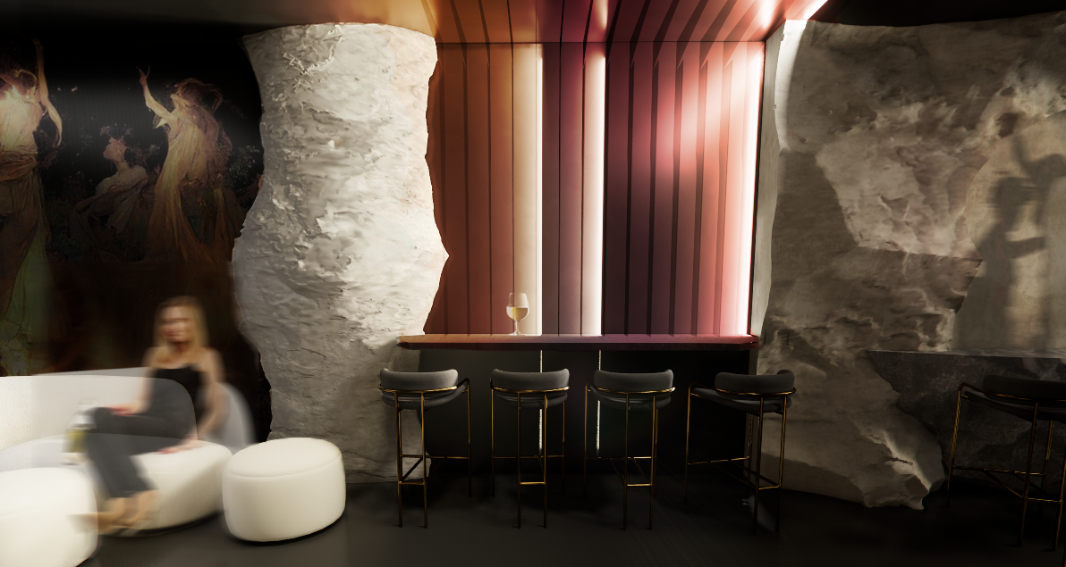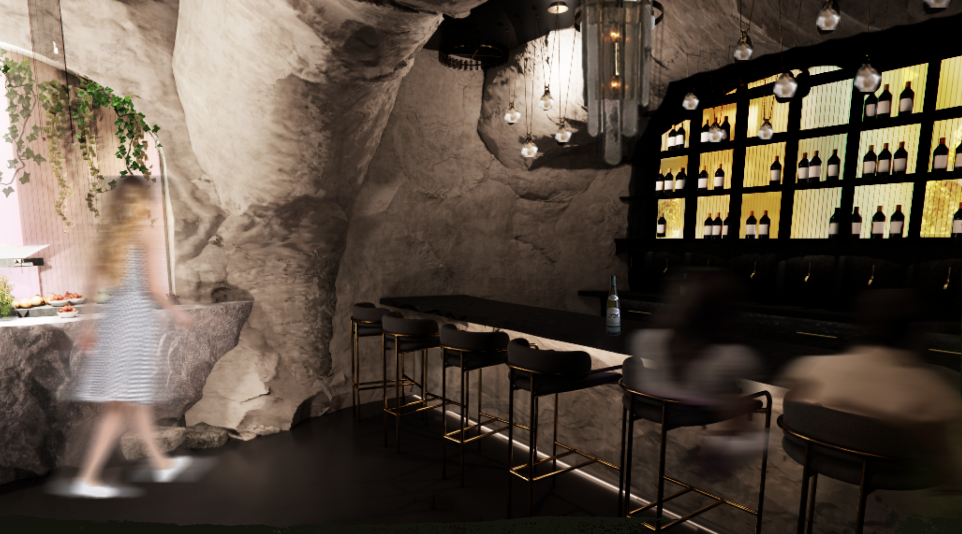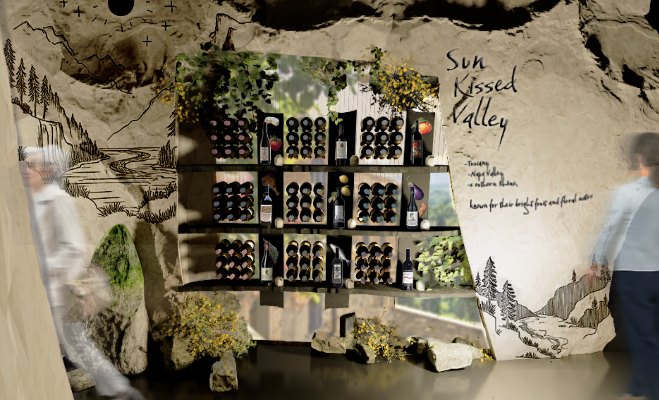 A mythical wine bar and retail space. This winery and retail space helps guests make informed, sustainable wine choices through immersive, plant-forward experiences. By highlighting climate impacts and reviving ancient farming practices, we position sustainability not as a trend, but as a return to tradition.