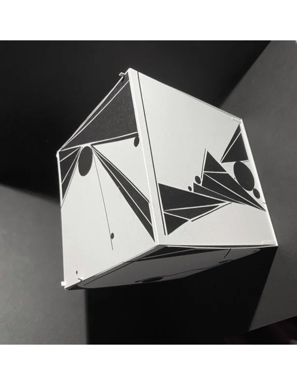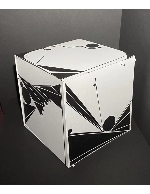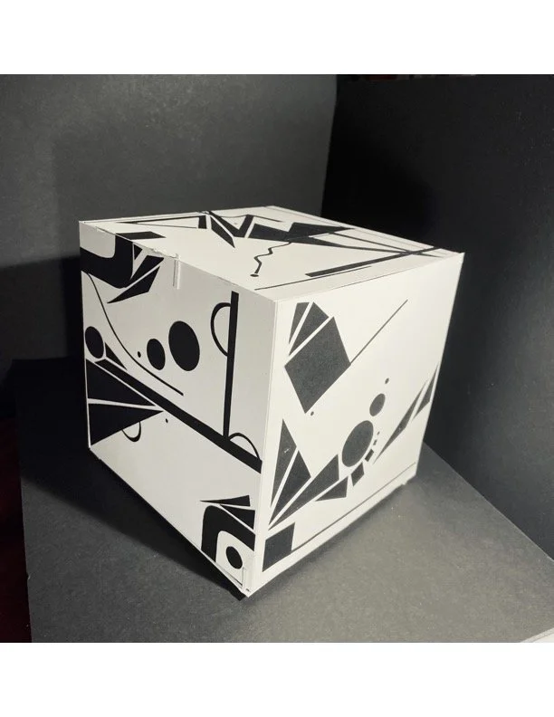 This assignment served to further refine and apply crucial skills in a three-dimensional context. It aimed to intricately align the edges of the vehicle with the edges found within the design's shapes. The resulting piece is not only visually captivating but also functional—in the form of a reversible and reconstructable cube.