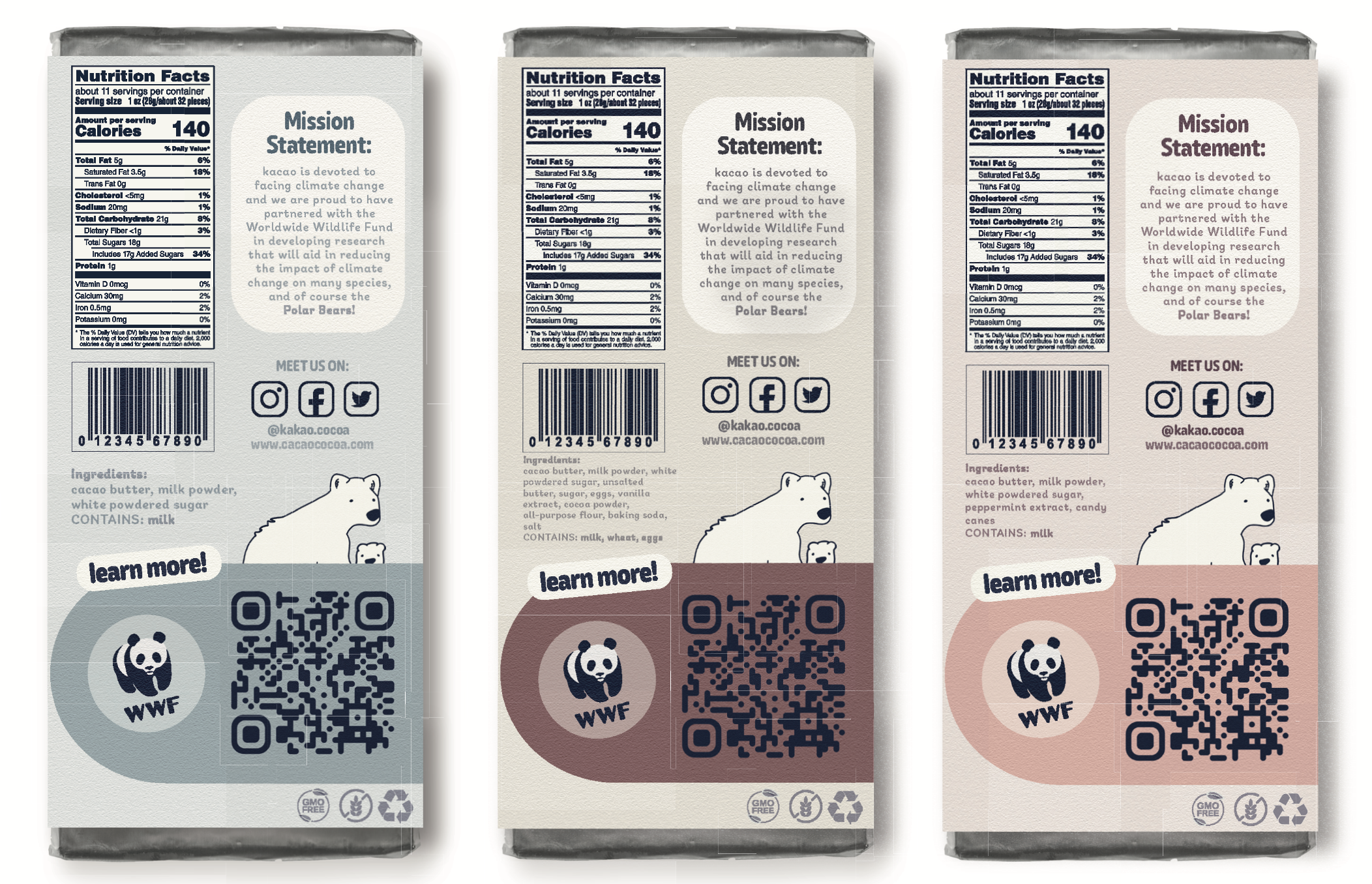 The objective of this project was to create a chocolate bar brand with a mission. I chose to conceptualize a forward thinking, environmentally conscious brand with a passion for polar bears.